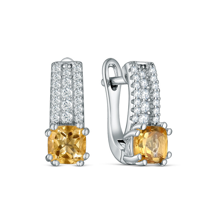 Совместные покупки Омск Ювелирные украшения и бижутерия Серьги — Серьги из серебра с цитрином и кубическим цирконием родированные 925 пробы GTE-1