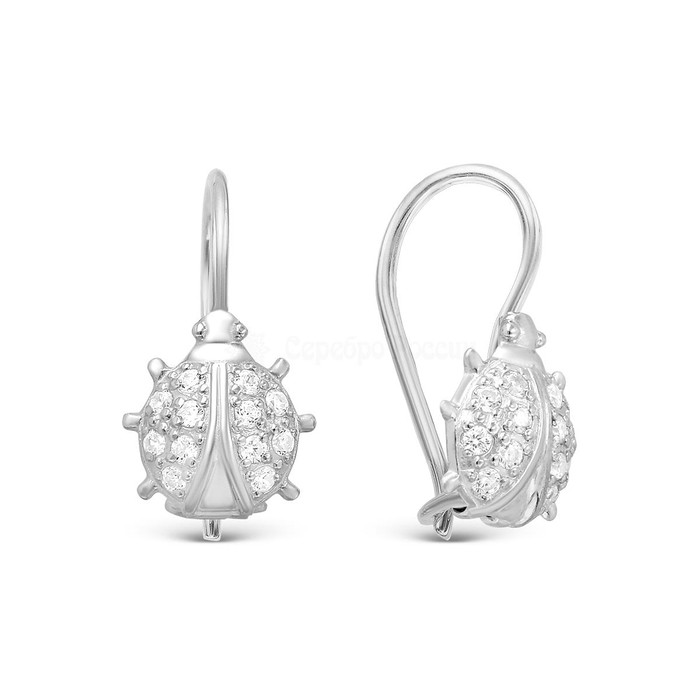 Серьги из серебра с фианитами родированные
