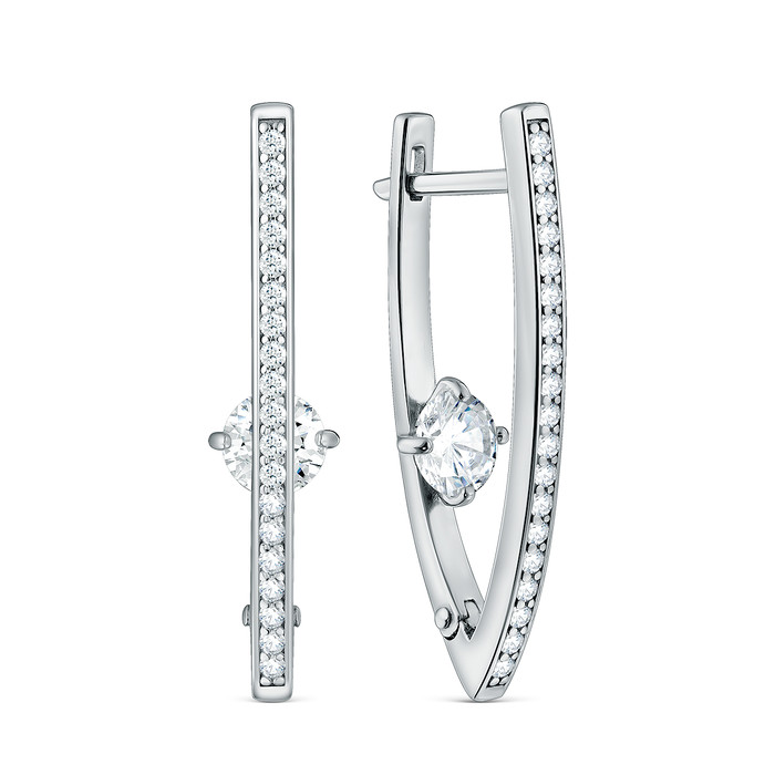 Серьги из серебра с фианитами родированные 925 пробы 2131153