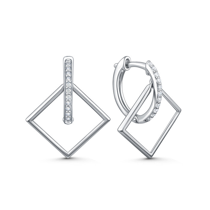 Совместные покупки Омск Ювелирные украшения и бижутерия Серьги — Серьги из серебра с фианитами родированные - Ромбы 925 пробы 11-1339р