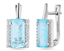 Серьги-пусеты из серебра с фианитами родированные 925 пробы С-3434-Р