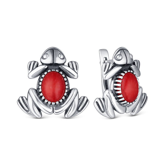 Совместные покупки Омск Ювелирные украшения и бижутерия Серьги — Серьги из серебра с кораллом родированное - лягушки 925 пробы С-4071ок454