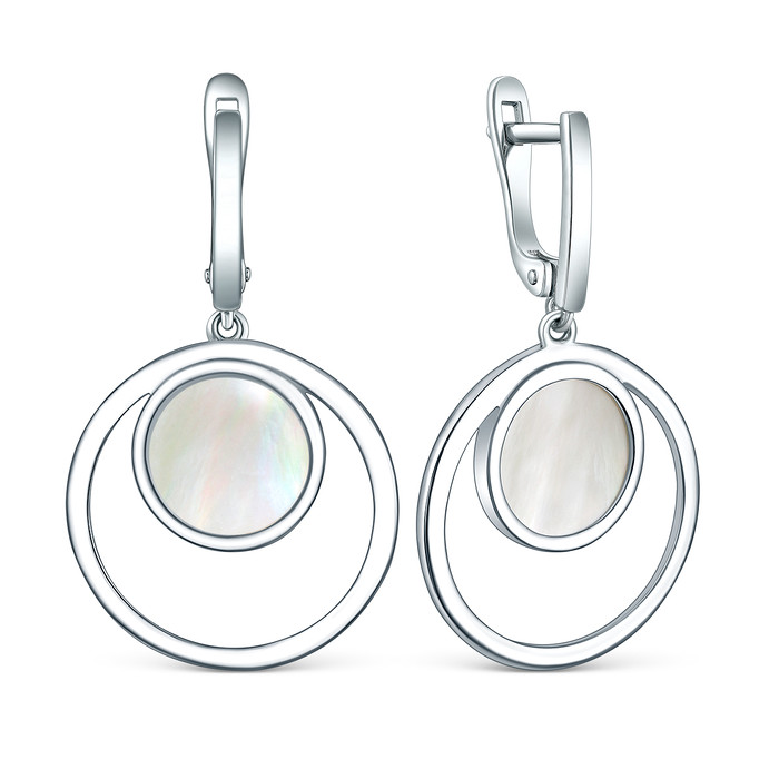 Совместные покупки Омск Ювелирные украшения и бижутерия Серьги — Серьги из серебра с натуральным перламутром родированные - Круги 925 пробы С-453