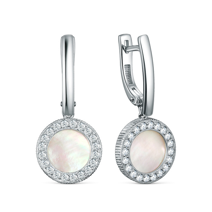 Совместные покупки Омск Ювелирные украшения и бижутерия Серьги — Серьги из серебра с перламутром и фианитами родированные 925 пробы 221-10-001р