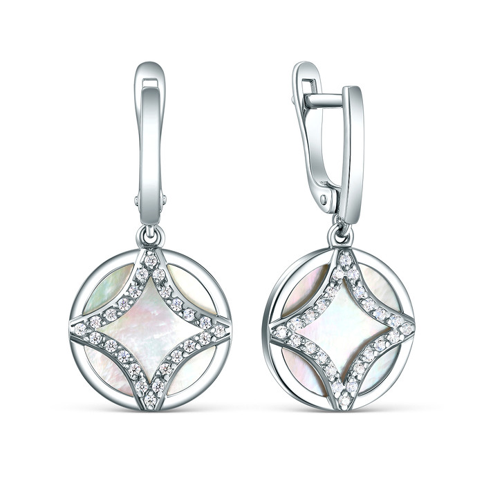 Совместные покупки Омск Ювелирные украшения и бижутерия Серьги — Серьги из серебра с перламутром и фианитами родированные 925 пробы С-4528-Р