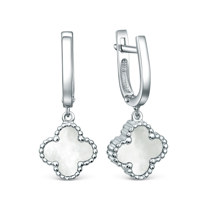 Совместные покупки Омск Ювелирные украшения и бижутерия Серьги — Серьги из серебра с перламутром родированные - Клевер, четырёхлистник 925 пробы