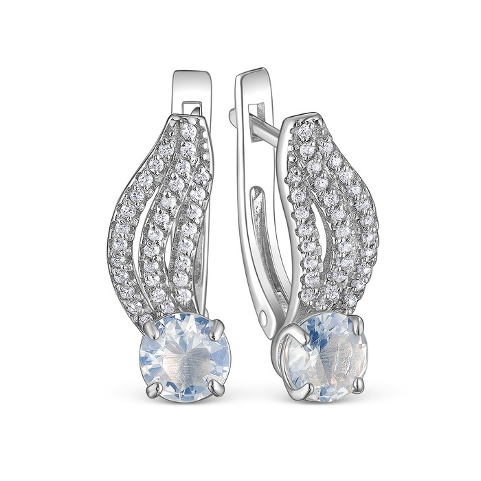 Совместные покупки Омск Ювелирные украшения и бижутерия Серьги — Серьги из серебра с плавленым кварцем цвета белый лунный камень и фианитами роди