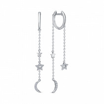 Серьги из серебра с рубином и кубическим цирконием родированные