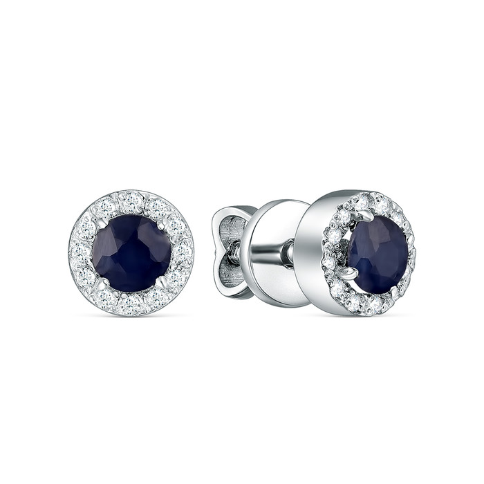 Совместные покупки Омск Ювелирные украшения и бижутерия Серьги — Серьги из серебра с сапфиром и фианитами родированные 925 пробы С-038р