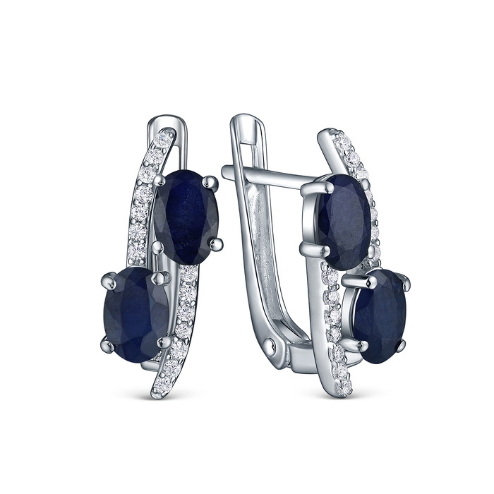 Серьги из серебра с сапфиром и кубическим цирконием родированные 925 пробы GTE-2