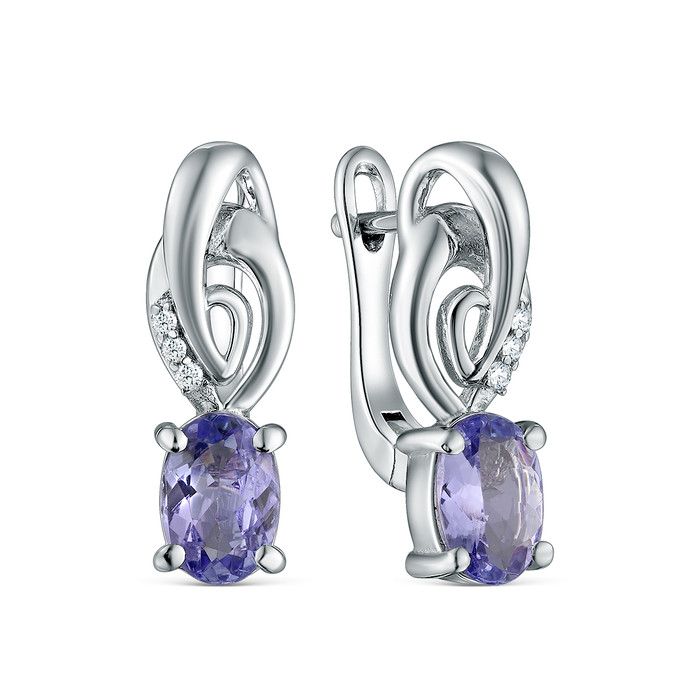 Совместные покупки Омск Ювелирные украшения и бижутерия Серьги — Серьги из серебра с танзанитом и кубическим цирконием родированные 925 пробы GTE
