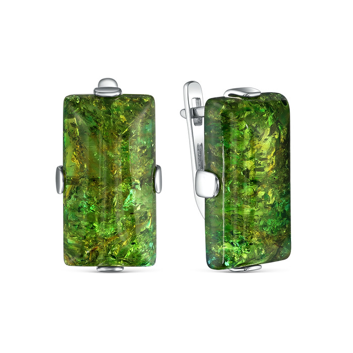 Совместные покупки Омск Ювелирные украшения и бижутерия Серьги — Серьги из серебра с зелёным янтарём родированные 925 пробы 04-802-0159-09
