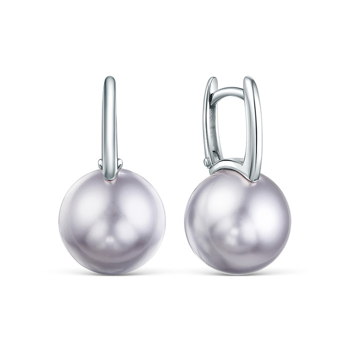 Серьги из серебра с жемчугом Swarovski родированные 925 пробы 2-508р806
