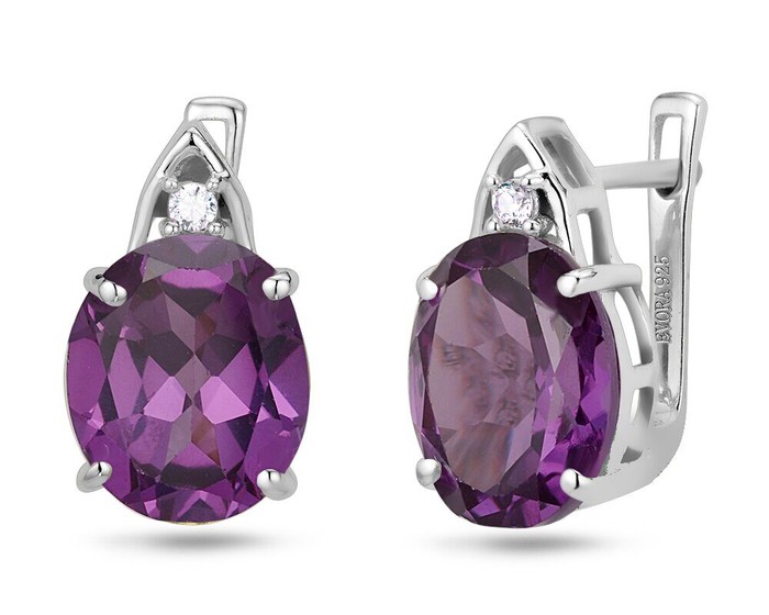 Серьги, арт.635370 Серебро Серебро 925, 5,9 гр., синт.александрит