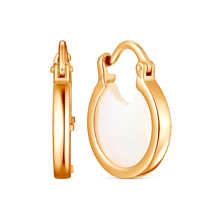 Серьги из золочёного серебра с белым перламутром 925 пробы с-4098зп484н