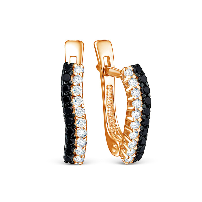 Серьги из золочёного серебра с фианитами и родированием п2-966-2з216