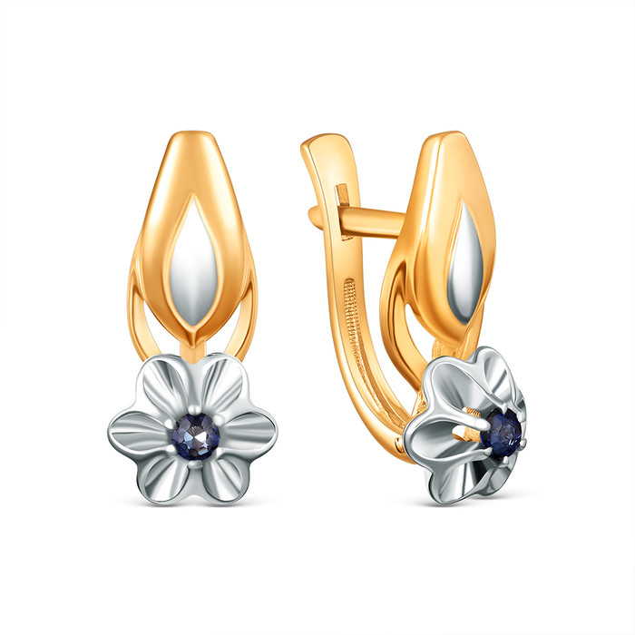 Серьги из золочёного серебра с сапфиром и родированием - Цветок п2-679зр408н