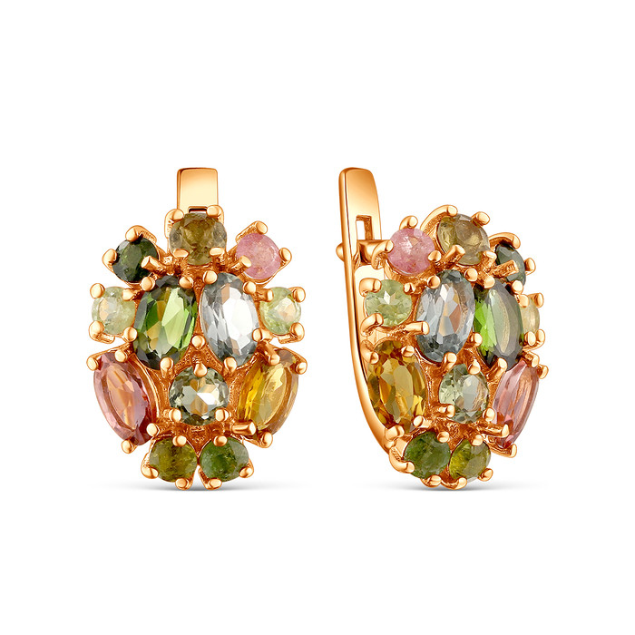 Совместные покупки Омск Ювелирные украшения и бижутерия Серьги — Серьги из золочёного серебра с турмалином мульти 925 пробы 2-472з428