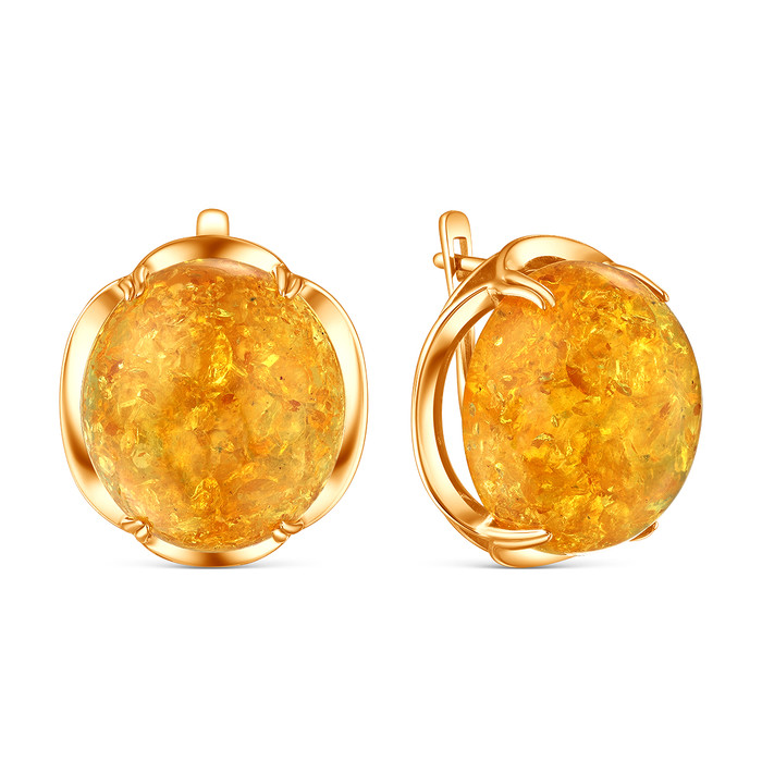 Серьги из золочёного серебра с жёлтым янтарём 05-802-0097-04