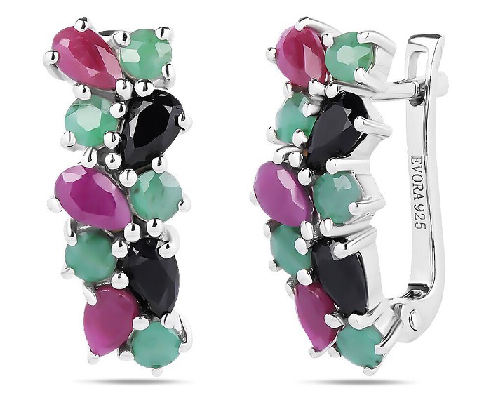 Серьги, арт.658552 Серебро Серебро 925, 5,38 гр., изумруд берилл , рубин корунд , сапфир корунд