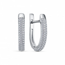 Серьги-конго из серебра с алмазной огранкой родированные, диаметр 2,5 см 925 про