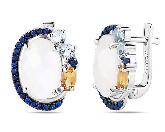 Серьги, арт.658569 Серебро Серебро 925, 5,59 гр., лунный камень , топаз , цитрин , наносапфир