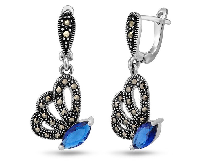 Совместные покупки Омск Ювелирные украшения и бижутерия Серьги — Серьги, марказит , синт.сапфир, SL-AGA558
