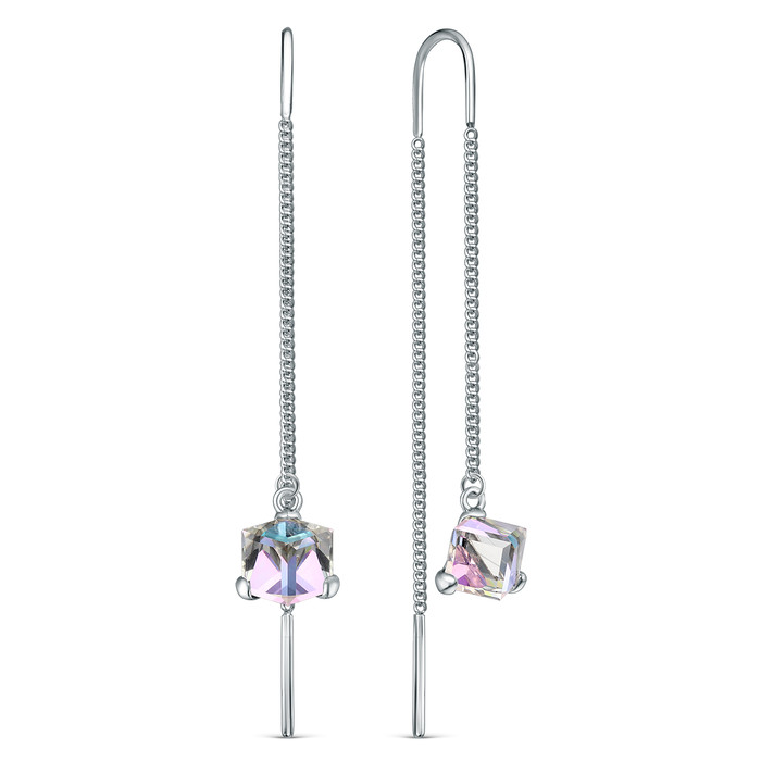 Совместные покупки Омск Ювелирные украшения и бижутерия Серьги — Серьги-продёвки из серебра с кристаллами премиум Австрия цвета розовый мистик ро