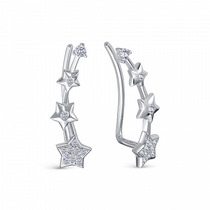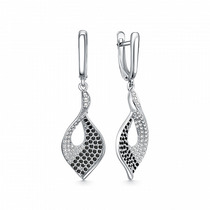 Серьги-продёвки клевер четверолистник из серебра с фианитами родированные 2-570р