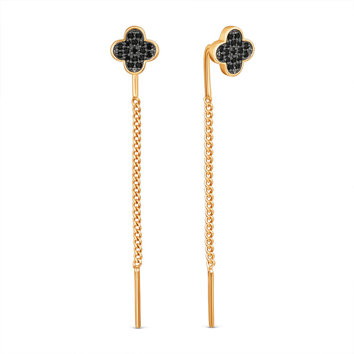 Серьги-продёвки клевер четверолистник из золочёного серебра со шпинелью 925 проб