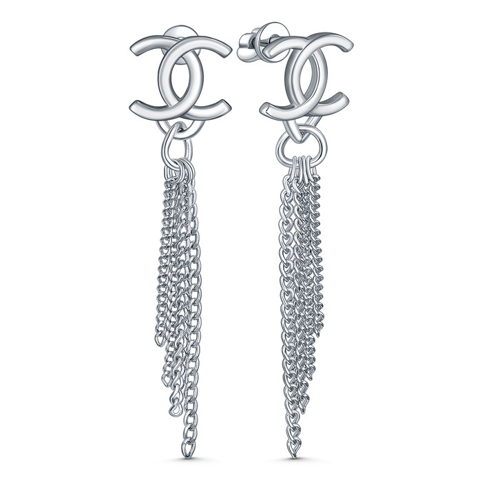 Совместные покупки Омск Ювелирные украшения и бижутерия Серьги — Серьги-пусеты длинные с цепями из родированного серебра 925 пробы с-0122р