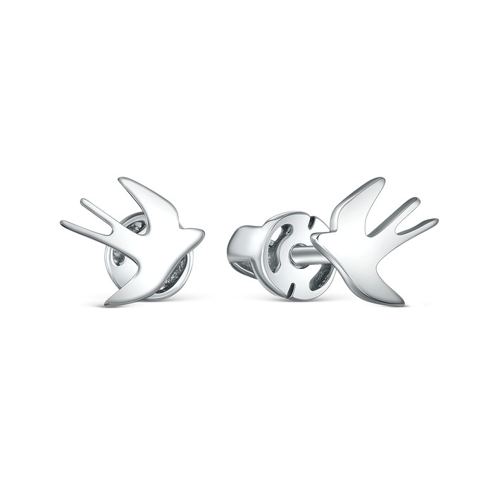 Совместные покупки Омск Ювелирные украшения и бижутерия Серьги — Серьги-пусеты из серебра родированные - Ласточки 925 пробы М2-022р