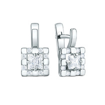 Серьги с фианитом родированные серебро 925*