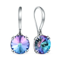 Серьги из серебра с кристаллом Премиум Австрия цвета Мистик розовый родированные