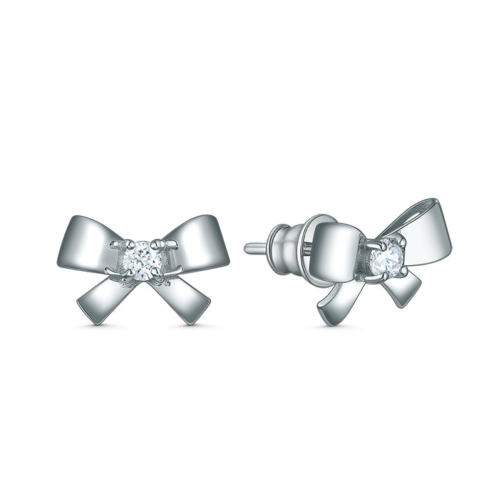 Совместные покупки Омск Ювелирные украшения и бижутерия Серьги — Серьги-пусеты из серебра с фианитом родированные - Банты 221-10-256-1р