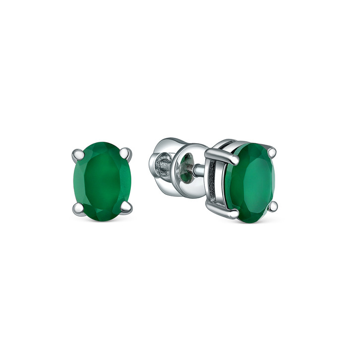 Совместные покупки Омск Ювелирные украшения и бижутерия Серьги — Серьги-пусеты из серебра с зелёным агатом родированные 25006р459