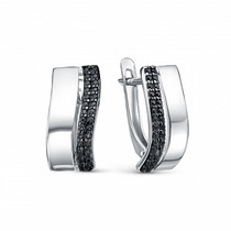 Серьги-пусеты из золочёного серебра с фианитами и родированием 925 пробы с-7249з
