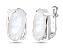 Серьги из серебра с бриллиантами и плавленым кварцем родированные 925 пробы 2-43