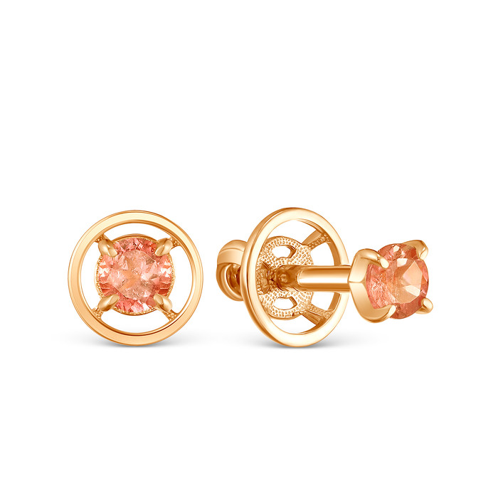Серьги-пусеты из золочёного серебра с натуральным турмалином мульти 925 пробы с-