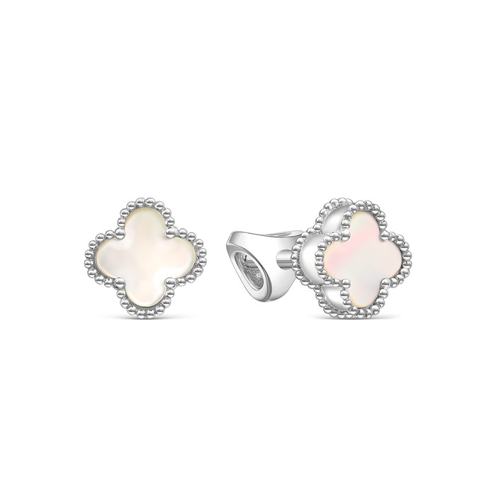 Совместные покупки Омск Ювелирные украшения и бижутерия Серьги — Серьги-пусеты Клевер Четырехлистник из серебра с белым перламутром родированные