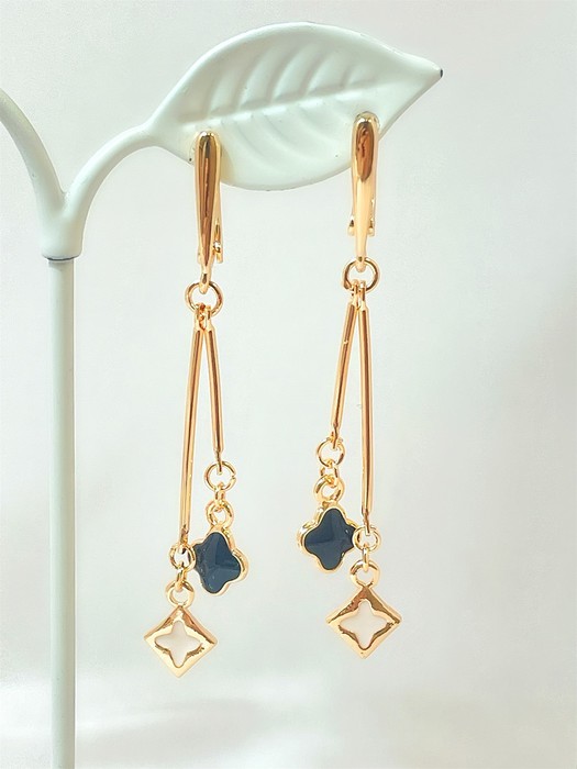 Стильные серьги из дубайского золота с черной и белой эмалью