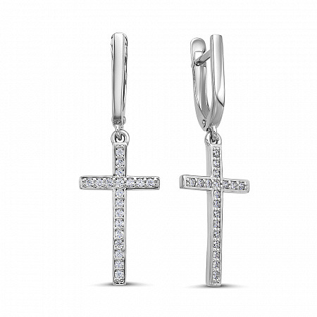 Серьги с фианитом родированные серебро 925*