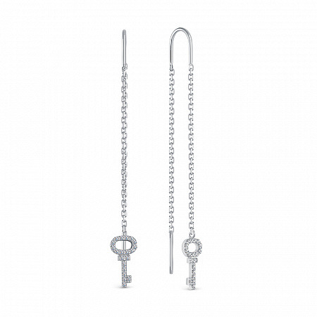 Серьги с фианитом родированные серебро 925*