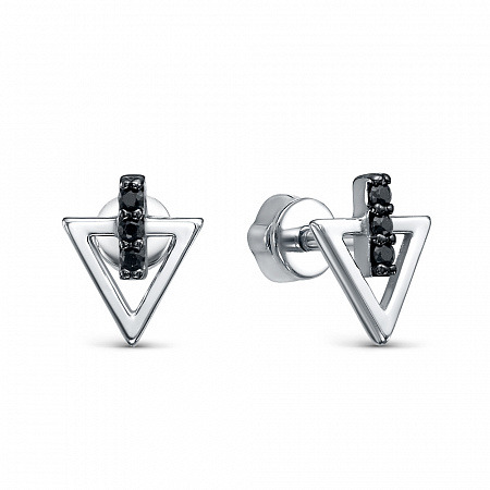 Серьги с фианитом родированные серебро 925*