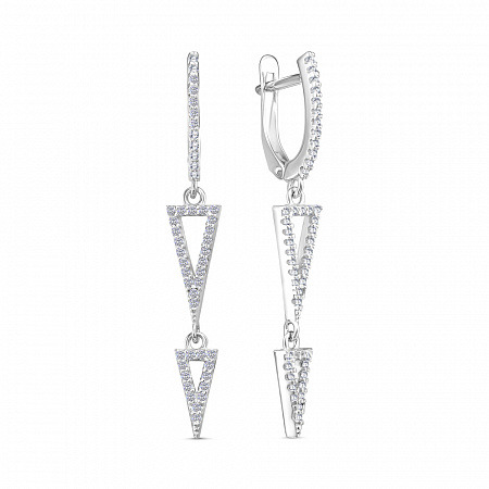 Серьги с фианитом родированные серебро 925*