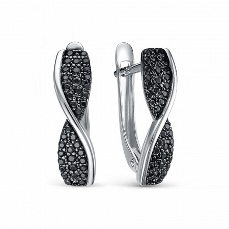 Серьги с фианитом родированные серебро 925*