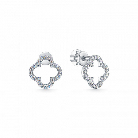 Серьги с фианитом родированные серебро 925*