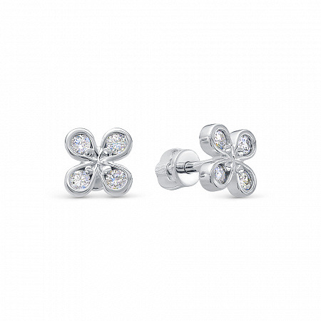 Серьги с фианитом родированные серебро 925*