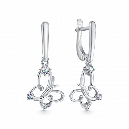 Серьги с фианитом родированные серебро 925*