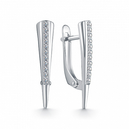 Серьги с фианитом родированные серебро 925*